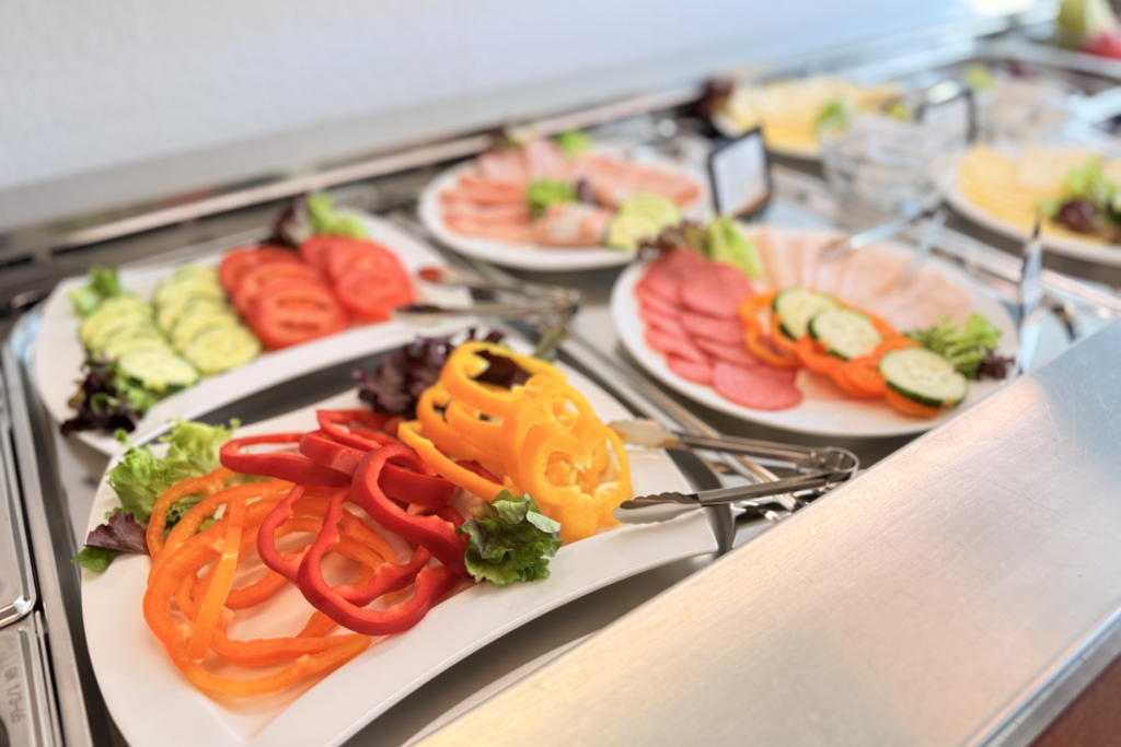 Starten Sie entspannt in den Tag mit frischen Brötchen, Aufschnitt, Obst, Joghurt, Müsli sowie Kaffee- und Teespezialitäten aus unserem Frühstücksbuffet.