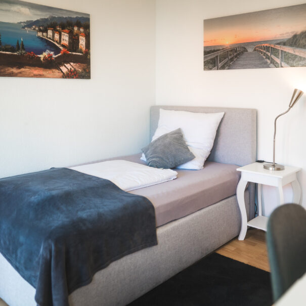 Genießen Sie Ihren Aufenthalt im komfortablen 120 cm Boxspringbett. Ein heller Arbeitsplatz mit Schreibtisch und Stuhl macht das Zimmer ideal für Geschäftsreisende. Zur Ausstattung gehören Kleiderschrank, TV sowie eine moderne Badnische mit Dusche, WC und Haartrockner. Das Einzelzimmer Komfort vereint Funktionalität mit einem angenehmen Wohlfühlambiente – perfekt für kurze wie längere Aufenthalte.