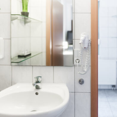 Badezimmer: Dusche, WC, Haartrockner, Pflegeprodukte