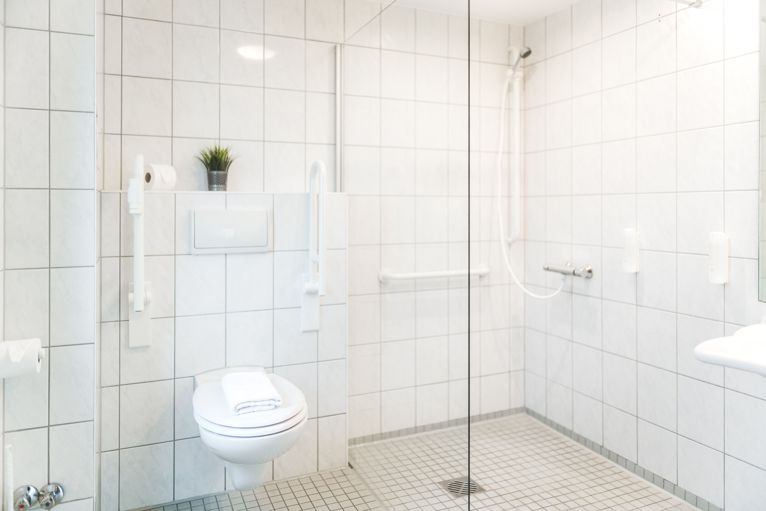 Das Badezimmer erfüllt sämtliche Anforderungen an echte Behindertengerechtigkeit: