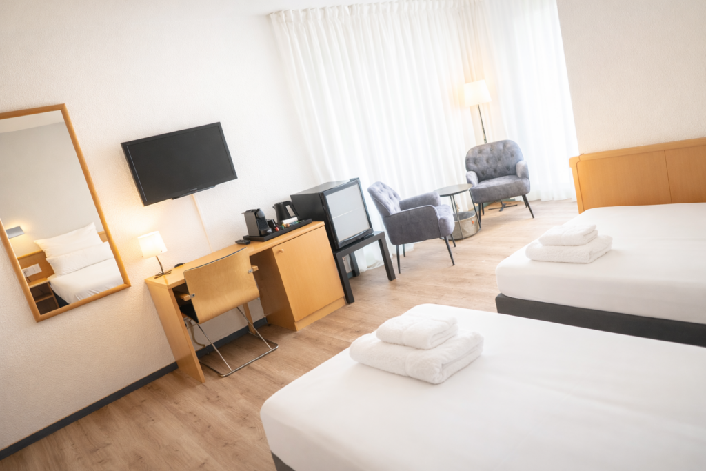 Unsere Doppelzimmer Premium (Business Living) bieten mit ca. 25 m² großzügigen Raum, eine besonders helle, offene Raumwirkung und einen separaten Wohnbereich – ideal für Gäste, die mehr als nur übernachten möchten.
