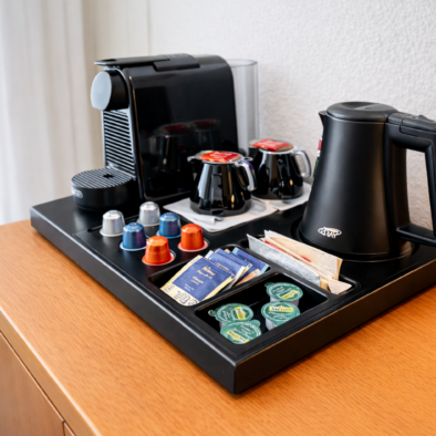 Zur weiteren Ausstattung gehören ein moderner Flachbild-TV, WLAN, ein Kühlschrank sowie Mineralwasser bei Anreise. Zusätzlich verfügen die Premiumzimmer über ein eigenes Welcome-Tray mit Kapselkaffeemaschine, Wasserkocher, Tee und Kaffee.