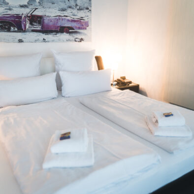 Unser großzügiges Penthouse Apartment Deluxe (ca. 65 m²) bietet ein exklusives Wohnerlebnis über den Dächern Wolfsburgs. Mit einem komfortablen Doppelbett, einer modernen Sitzecke und einer voll ausgestatteten Küche eignet es sich perfekt für Gäste, die höchsten Komfort und viel Raum schätzen. Ein besonderes Highlight ist die umlaufende 180°-Dachterrasse, die direkten Zugang vom Apartment bietet und zum Entspannen einlädt.